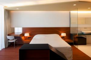 Entstanden ist ein markanter Baukörper, der sich präzise und selbstbewusst vom Hauptgebäude absetzt. Die Gestaltung orientierte sich in Proportion und Dachgestaltung an traditionellen Bauformen ohne einem alpinen Sentimentalismus zu verfallen. Die Fassade besticht in ihrer Plastizität und Dynamik, auf Grund des Spieles von verschieden großen und versetzt gesetzten Öffnungen und geknickten Fassadenflächen.