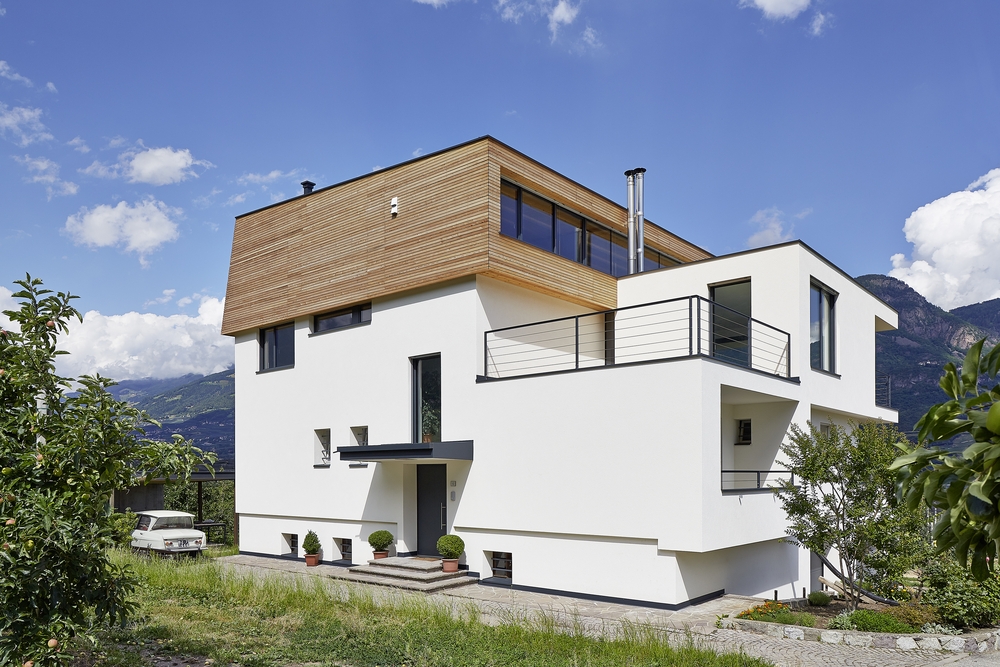 Das Wohnhaus steht in Hanglage über Tscherms. Beim bestehenden Wohnhaus wurde das Dachgeschoss abgetragen und an Stelle des Satteldaches ein zweigeschossiger kubischer Baukörper errichtet. Die darunterliegenden Geschosse wurden durch Anbringung einer Fassadendämmung energetisch saniert.