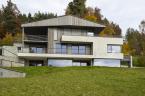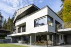 Bei der Planung wurde großes Augenmerk auf eine natürliche Einbindung des Gebäudes in das natürliche Gelände gesetzt. Der Geländesprung an der Nordwestseite wurde durch eine terrassierte Abstufung des Hanges aufgefangen. Der Baukörper nimmt Bezug auf die Bautypologie der umgebenden Gebäude um eine harmonische Einbindung in den Baubestand zu gewährleisten. Bei der Materialwahl wurde auch Bezug auf traditionelle Gestaltungselemente genommen, Ober- und Dachgeschoss sind mit Holz verkleidet, die Südostseite als Massivbau mit Strukturputz ausgeführt, verzahnt mit dem Holzbau, farblich dem Natursteinmauerwerk angepasst. Als Holzverkleidung wurde eine Zedernholzverkleidung verwendet, mit Nut- und Feder verbunden, in unregelmäßigen Breiten verlegt. Die Fenster in der Holzfassade haben einen Holzrahmen um die Plastizität zu erhöhen und durch den Schattenwurf die Fassade zu beleben. Modern interpretiert ist auch das Satteldach, es wurde auskragend auf den Baukörper gesetzt und seitlich abgeknickt.
